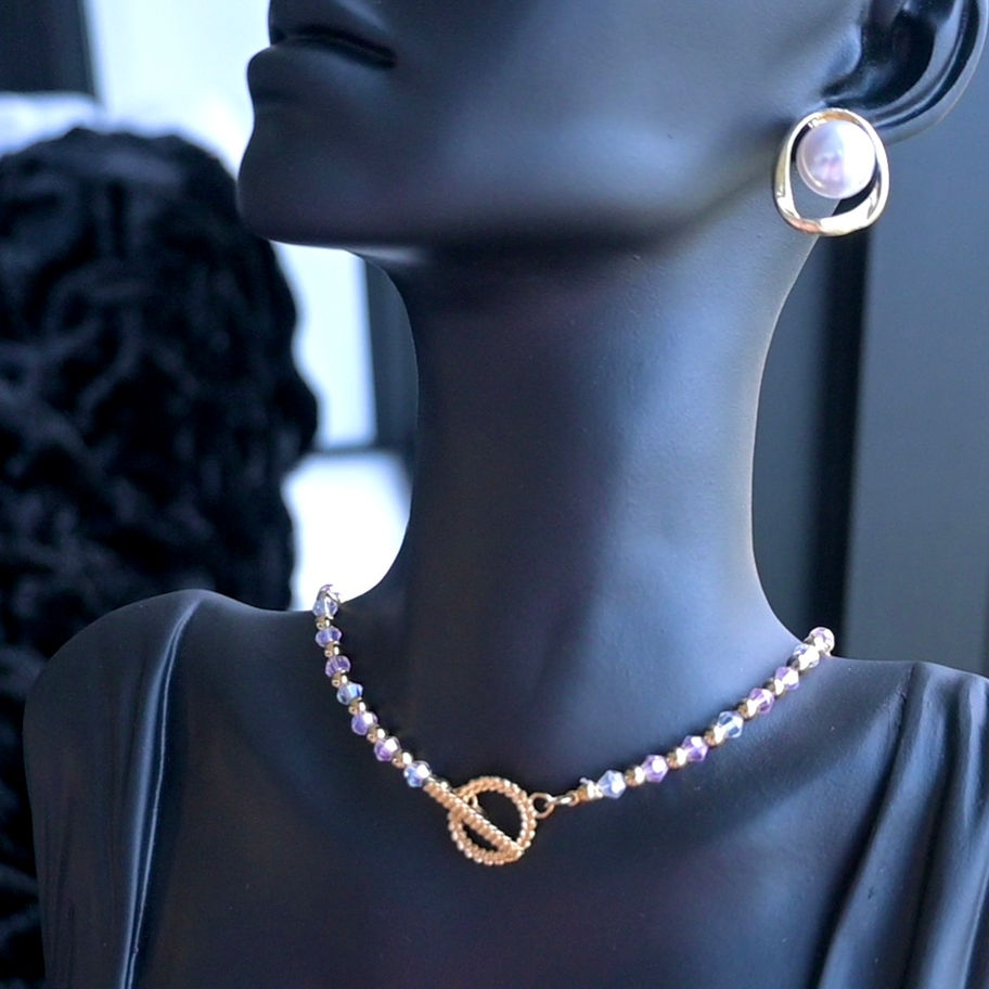 - This delicate piece is hand-crafted from glass crystal beads and 18K rose gold-plated stainless steel. Designed for your active lifestyle, our Poupée collection is not only beautiful but also practical—you can wear at the beach, at the gym, in the shower, or wherever life takes you, without worrying about tarnishing - and the best part is our beautiful OT clasp, for easy on and off without throwing hands with your jewelry.